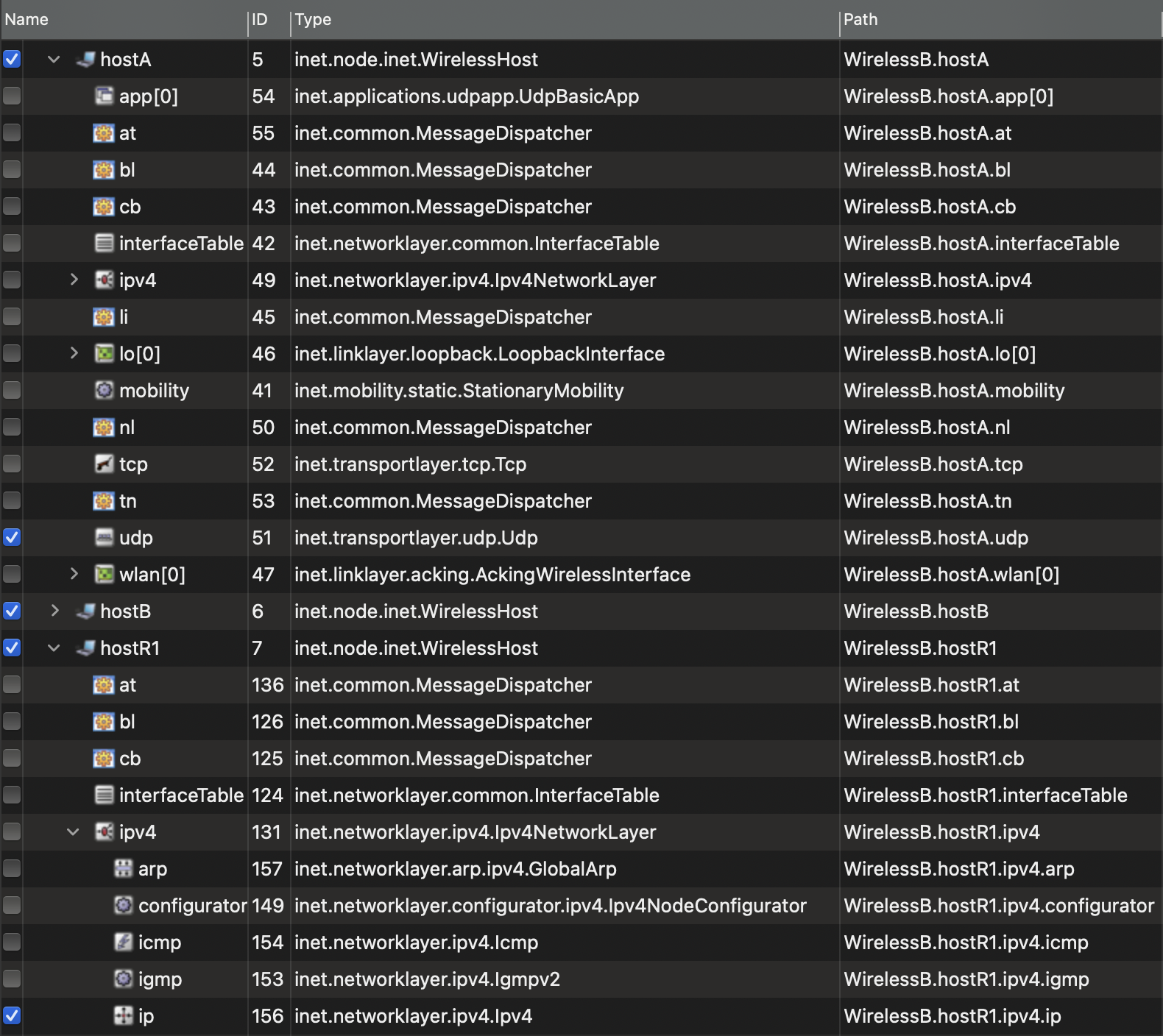 scalar WirelessB.hostA.wlan[0].mac